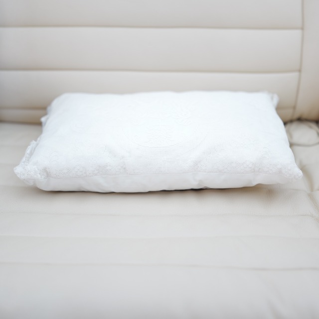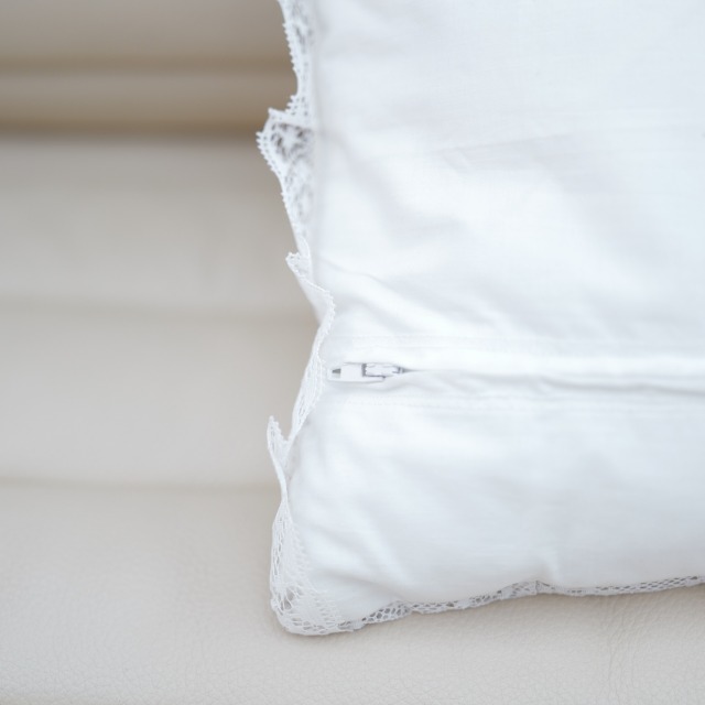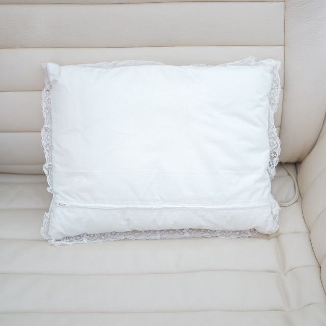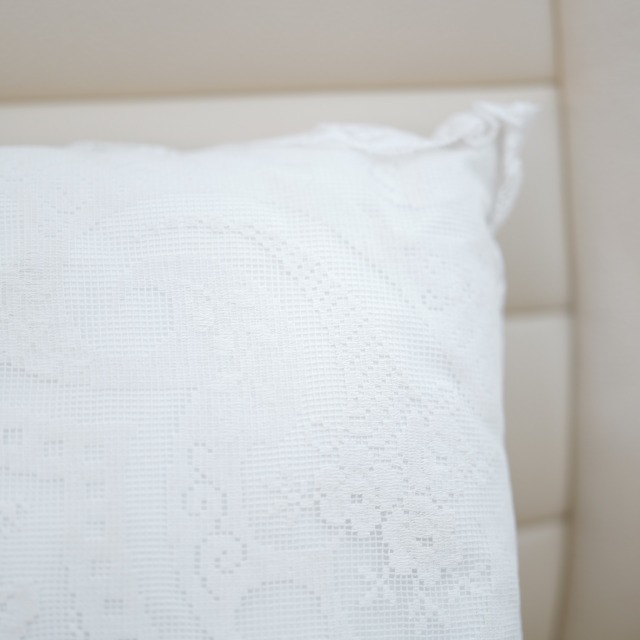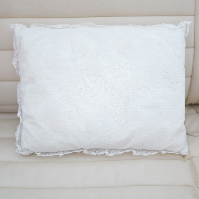 1900年代 イギリス製 フィレレースを使用したワトー紋デザインのクッションです