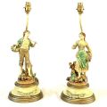 20世紀のフィギュアランプのペア。男と女のフィギュア付き。L & F Moreauの刻印付き。