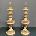 20世紀の彫刻された塗装木製イタリアランプのペア。優美な形状。