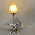 アールデコのイーグルとトータスランプ。クロームメッキのイーグル中心にトータスの足、装飾的なフロストガラスシェード付き。