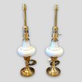 20世紀の真鍮メッキと磁器のランプのペア。装飾の透かし彫り付き。