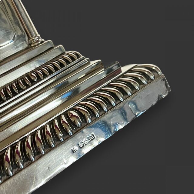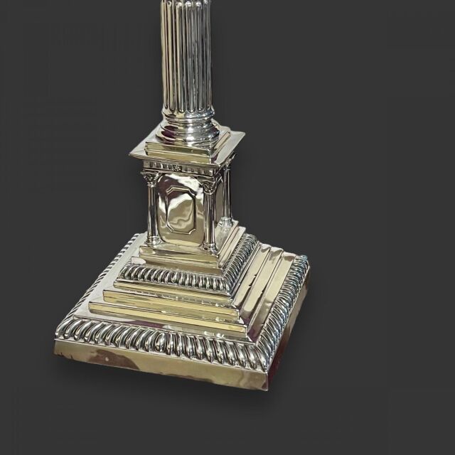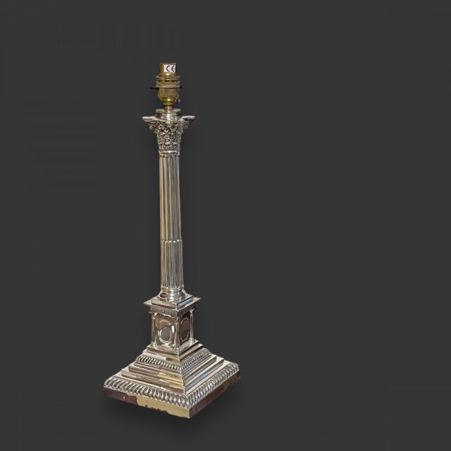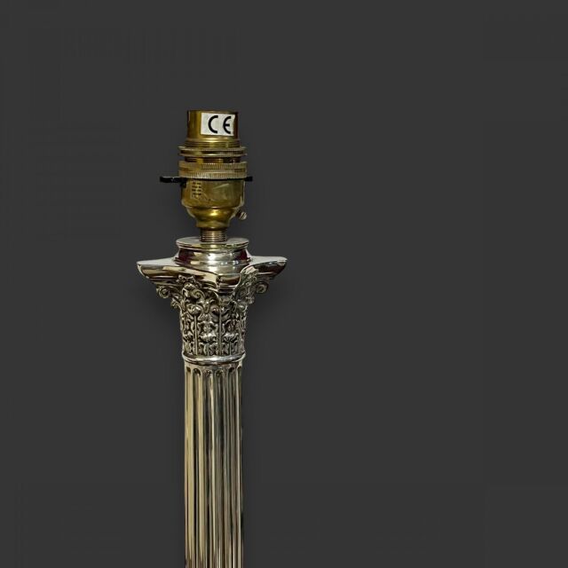 エドワーディアン時代の重厚なシルバー製コリント式柱テーブルランプ。1906年製、シェフィールド、フェントンブラザーズリミテッドの刻印入り。