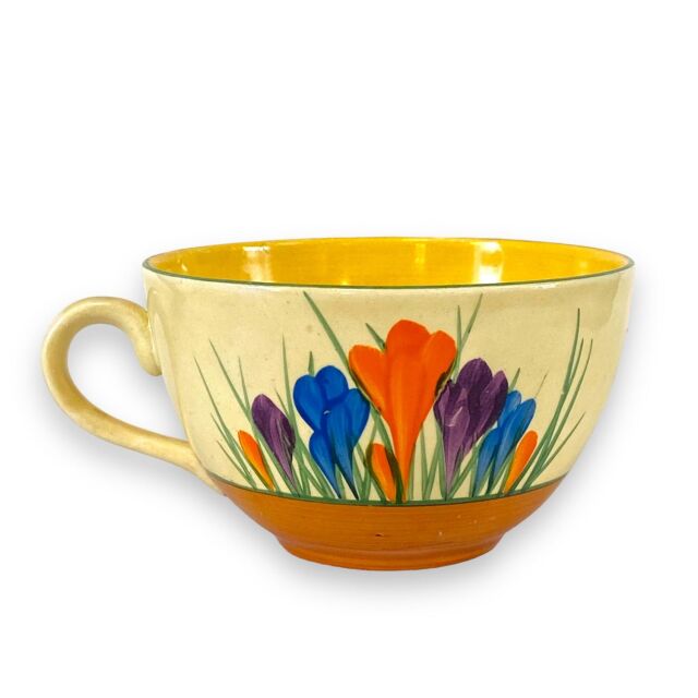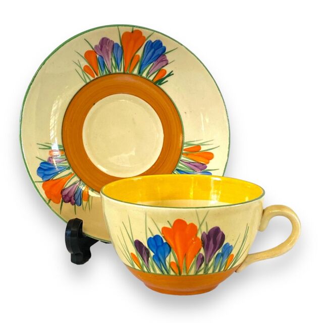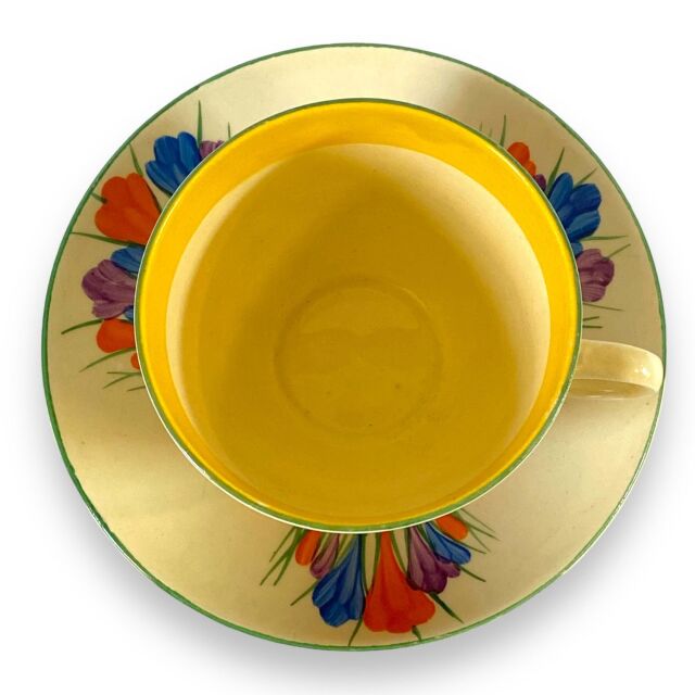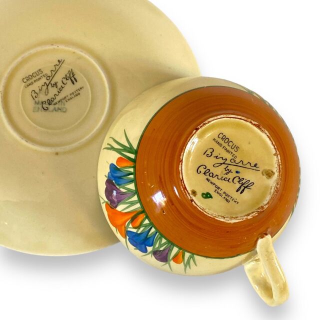 クラリス・クリフ 1930年代 秋のクロッカス グローブ形カップ&ソーサー。サイン入りビザールニューポートポタリーバックスタンプ。