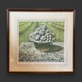 ノーマンスティーブンスのシルクスクリーン、「Ornamental Still Life in an English Garden Devon」94/100。英国デボンの庭園を舞台にした、優美な静物画です。限定版ならではの希少性も魅力。
