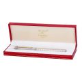 カルティエのヴィンテージ万年筆です。ツイストデザインのトップが特徴的で、リブ模様が上品な雰囲気を醸し出しています。オリジナルボックス付きで、経年による変化もまた、アンティークならではの味わいとして楽しめます。CCのメーカーズマークが刻まれ、その品質の高さを物語ります。万年筆を持つ度に、カルティエの歴史と伝統を感じられる特別なアイテムです。書斎に置くだけで、空間を華やかに彩ります。
