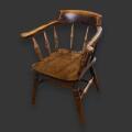 キャプテンズチェア、またはスモーカーズボウチェアとも呼ばれる。高品質なオーク材とニレ材を使用し、堅牢な作りとクラシックなデザインが特徴です。座面はリングターンされた脚とダブルHストレッチャーでしっかりと支えられ、実用性と美しさを兼ね備えています。