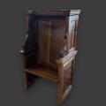 カシャー州バーノルズウィックの古い教会から譲られた特別な逸品です。 堅実で美しいオーク材は、時を経ても優雅な輝きを放ち彫刻が施されたアクセントと、重厚感あるパネル状の背面が特徴的で、当時の卓越した職人技を感じさせます。