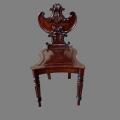 背もたれ、脚、そして座面に施された渦巻き状の彫刻が、このチェアに独特の華やかさとクラシックな魅力を与えています。マホガニー材特有の深い色合いと滑らかな質感が、高級感をさらに際立たせています。