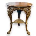 ヴィクトリア時代の英国のパブで実際に使われていた、鋳鉄製のテーブルです。ぶどうの房とライオンの頭という、どこか遊び心のあるデザインが特徴的。一般的なブリタニアテーブルとは一味違った、個性あふれる一品です。天板には、経年によるひび割れが見られますが、アンティークならではの味わいとしてお楽しみいただけます。マホガニー材の天板との組み合わせが美しく、重厚感と温かみを兼ね備えています。3本の爪脚がしっかりとテーブルを支え、安定感も抜群。お部屋に置くだけで、ヴィクトリア時代の英国の雰囲気を味わえる、特別な一枚です。トップは綺麗に仕上げられていますが、真ん中に亀裂が入っています。