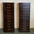 オーク材で作られた、高さ10段のチェスト2台セット。