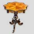 19世紀フランス製のウォールナット材とオルモル装飾が美しいテーブルです。蝶々のような模様の化粧張りされた天板と、オルモル装飾の縁取りが特徴です。