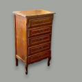 20世紀初頭に作られた、オーク材の背の高いチェストです。5つの引き出し、彫刻が施された斜めの角、カブリオールレッグが特徴です。