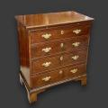 1780年頃に作られた、ジョージアン様式のマホガニー製チェストです。真鍮製の取っ手とエスカッションが付いた、段々になった4つの引き出しが特徴です。