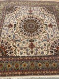 この絨毯は、職人の手で織り上げられたペルシャ絨毯で、美しさと高級感が魅力の一品です。