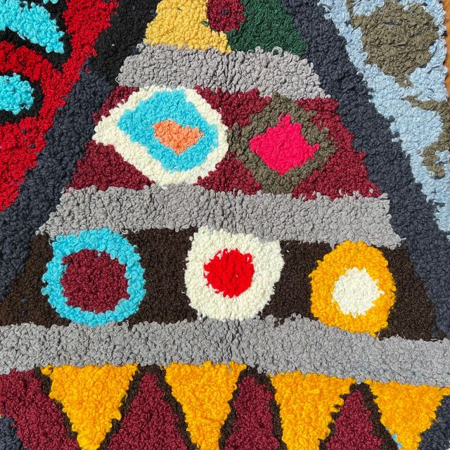 これらのラグは、マラケシュの南にある山奥の小さな集落の、各家庭で作られています。文化的、宗教上の理由でその集落には観光客などが立ち入ることはできず、そのエリアは極めて神秘的な場所となっています。レオアトランテのデザイナー達はモロッコのTiznitに住んでおり、その集落の知り合いを通じてアクセスが可能なため、今回の買い付けが可能となっています。