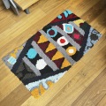 ZINDEKH(ジンデッキ)と呼ばれるこのラグは、シリアルや小麦粉、穀類が入っていた袋をベースに、ユーズドのセーターなどをほぐして手作業で編み込み、100%リサイクルの素材で作られたオリジナルな作品です。