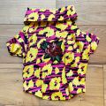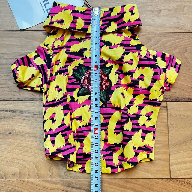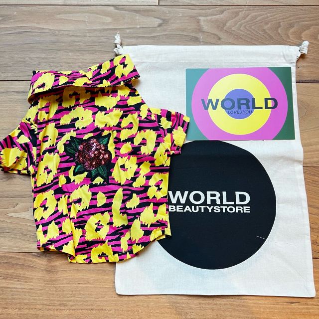 WORLD(ワールド)というセレクトショップが取り扱うワンちゃんのお洋服。日本では見かけないサイケデリックな柄と背中のパッチワークがワンちゃんの個性を引き出します。スナップで着脱も簡単。