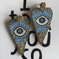 繊細なビーズとインパクトのある目がユニークなピアスです。