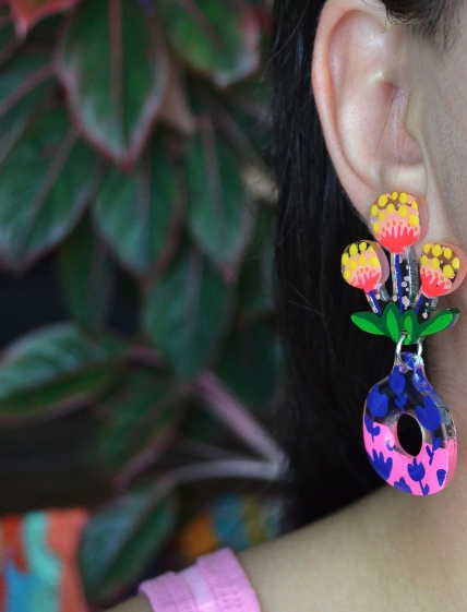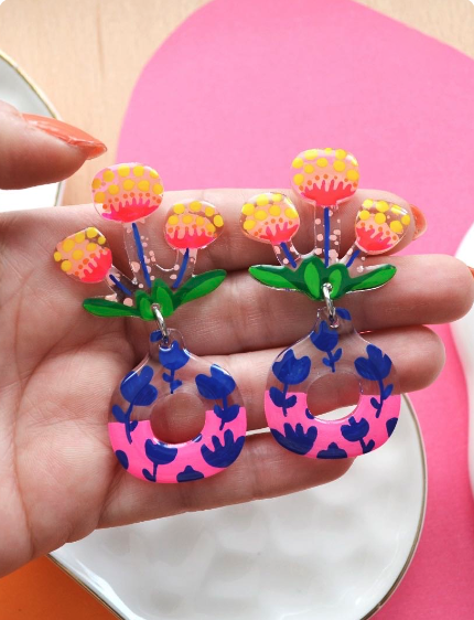 さらに、アクリル絵の具とレジンを使用しているため、無毒で環境にも優しいエコフレンドリーな素材です。デイリー使いにぴったりのデザインで、長時間つけても負担になりません。