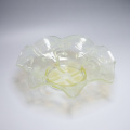 このフルーツボウルは、独特の素材であるヴァセリンガラスで作られており、その美しさと独特の光沢が特徴です。ヴァセリンガラスは、微量のウランを含むため、紫外線を当てると美しい蛍光緑色に光る特性があります。この特性が、日常の使い勝手に加え、ディスプレイとしても一層の魅力を引き立てます。
