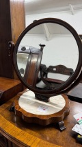 1880年代の英国製ウォールナット材円形ミラー。デスクなどの上に置く用の円形ミラーです。