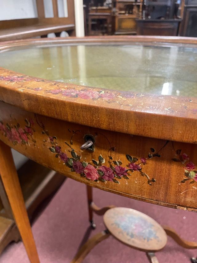 サテンウッドの温かみのある色合いと滑らかな質感が、ジュエリーケースに上品な印象を与えています。特に目を引くのは、手描きのペイントデザインで、細部にまでこだわった芸術的な模様がケース全体を華やかに彩られたハンドペイントのデザインは一つ一つが丁寧に施されており、個性的でありながらも洗練された美しさを感じさせます。