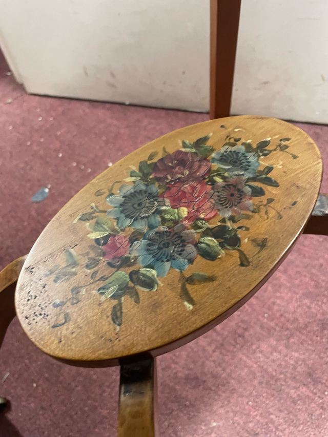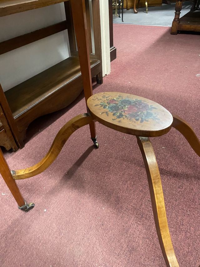 ハンドペイントのデザインが施された美しい逸品で、キャスター付きで持ち運びも便利です。