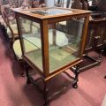 1910年代イギリス製のマホガニー材のガラスキャビネットです。四方と上までガラスで囲まれ、まるで宝石箱のような繊細なデザイン。