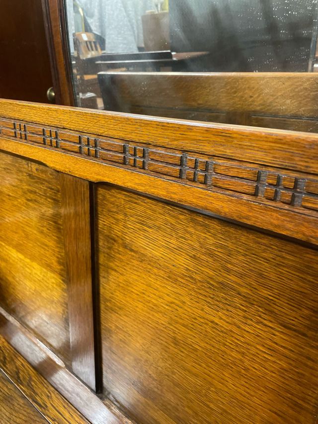 ・アンティーク家具は、風合いを損なわぬ様、商品にあった着色オイル、ワックス等で仕上げております。お届け直後はオイルやワックスが付着する場合がございます。ご利用の前に一度、不要になった柔らかい布で乾拭きを行ってからからご利用になる事をお勧めいたします。