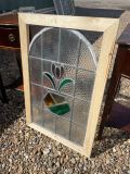 チューリップのデザインが素敵なアンティークステンドグラス。1920年代のイギリスで生まれた、アンティークステンドグラスです。