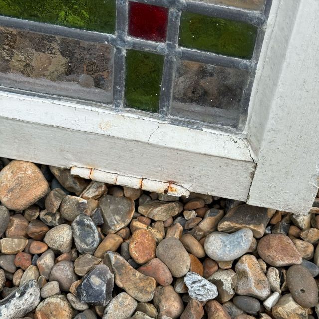 レッドとグリーンの補色が鮮やかなステンドグラス。