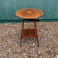 1900年代イギリス製の、マホガニー材のサイドテーブルです。天板の中心に、太陽を模した美しいインレイが施されています。