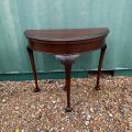 1920年代イギリス製の、マホガニー材のコンソールテーブルです。重厚感のあるマホガニー材の美しい木目が特徴で、経年による艶が深みを増しています。