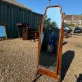 縦の角度調整可能。全体のウォールナットの木目が美しいです。1930年代イギリス製の、ウォールナット材のシュバルミラーです。