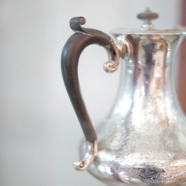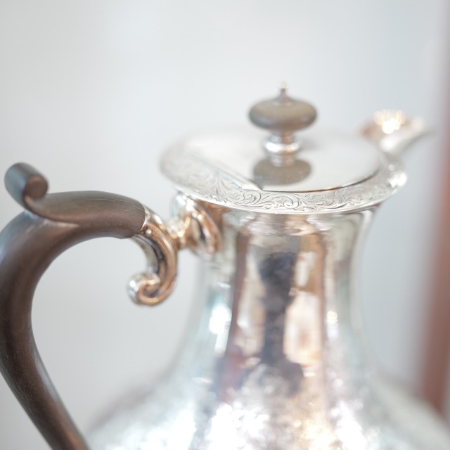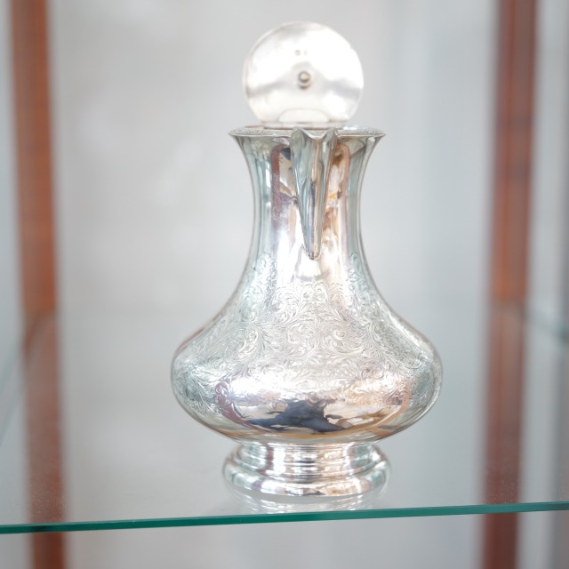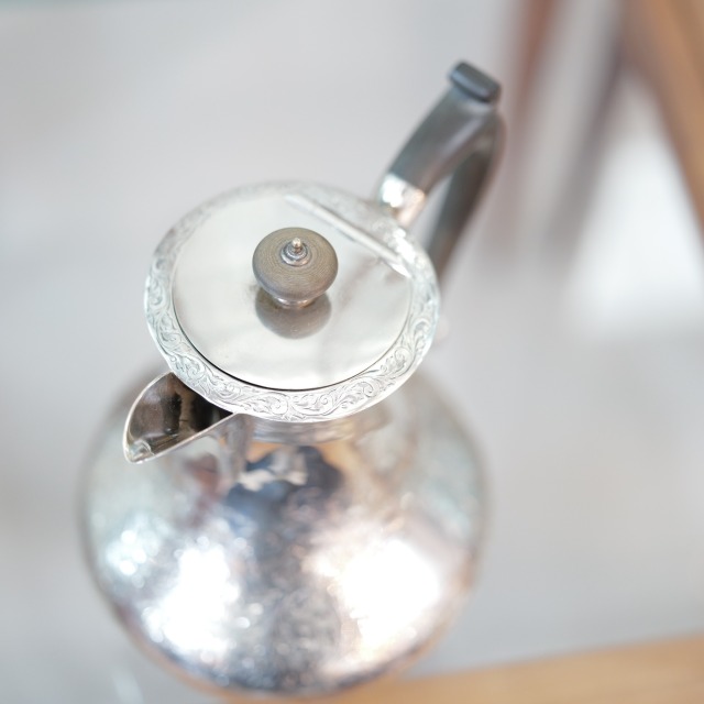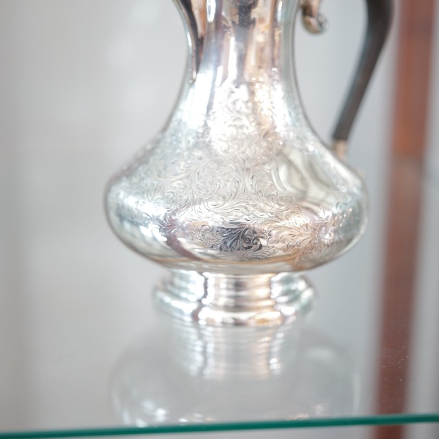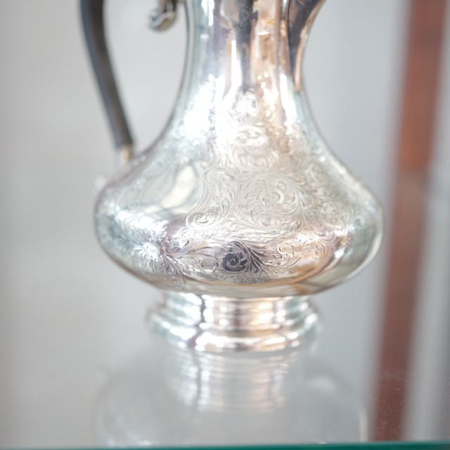 1925年 バーミンガム製 アカンサス紋様が美しく彫り込まれた純銀製ジャグです