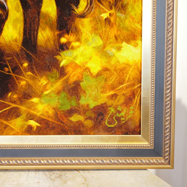 タブリーズ産 ペルシャ絵画絨毯 馬モチーフ ゴレシー作