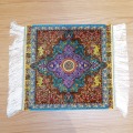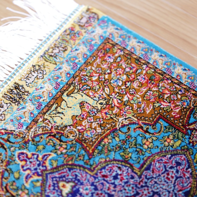 イラン製 ペルシャ絨毯風 トランジ柄 メダリオン ミニラグ 40×40