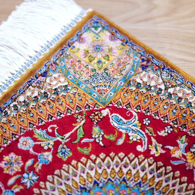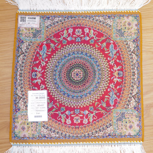 イラン製 ペルシャ絨毯風 メダリオン柄 ミニラグ 40×40