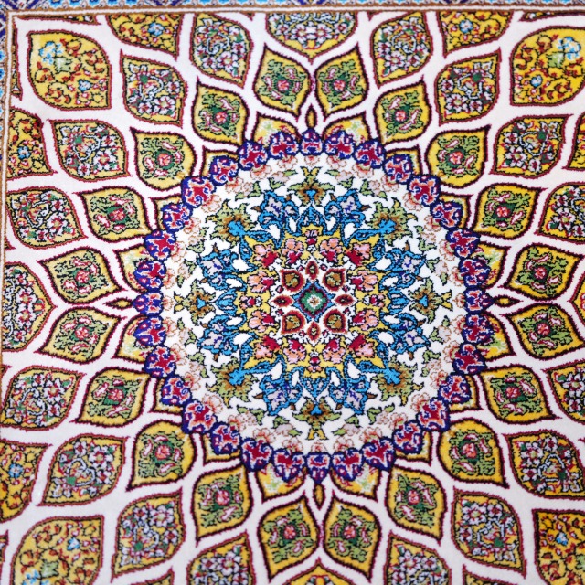中央から放射状に広がる伝統的メダリオン柄